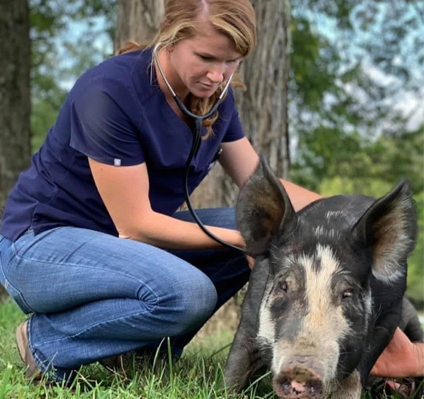 Our veterinarians care for a variety of pigs from production animals to beloved pets. We are available for on-farm routine wellness from vaccinations to tusk and hoof trimming. We are involved in disease testing, management, and control. We offer in-hospital surgery including spays and hernia repairs. Our veterinarians are well versed in the different ailments concerning pet pigs and are able to run in-house diagnostics as well as hospitalize sick cases.Â